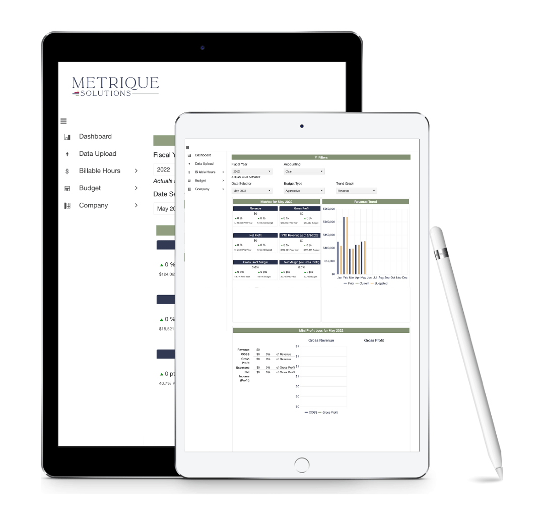 We love Metrique Solutions! It’s so easy to use! Seeing and understanding my financials with Metrique Solutions has been a game changer. Having worked with Michele’s spreadsheets for years, it is so nice to have them all in one place. Using this dashboard has allowed us to see where our revenue is generated and where we are spending it.